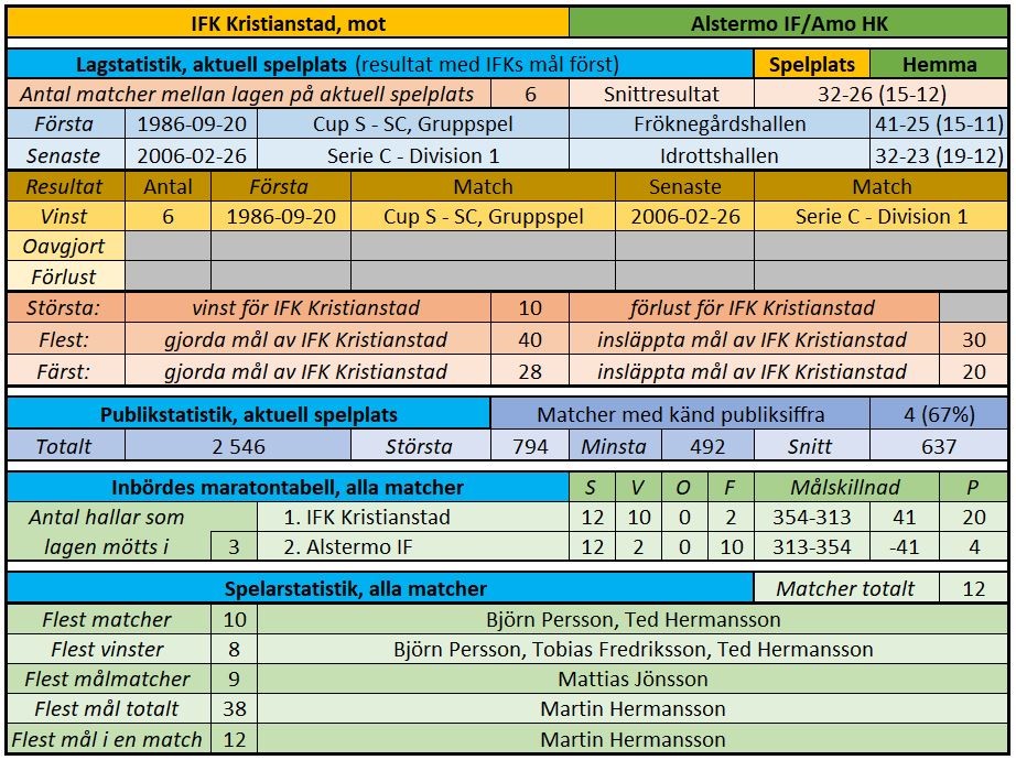 Efter att ha spelat i Fröknegårdshallen (!) och Idrottshallen är det nu dags för Amo HKs första match i Kristianstad Arena. För vår egen del blir det match nummer 329 i Arenan. Resultat de 10 senaste mötena mot Alstermo IF/Amo HK hittar du här.