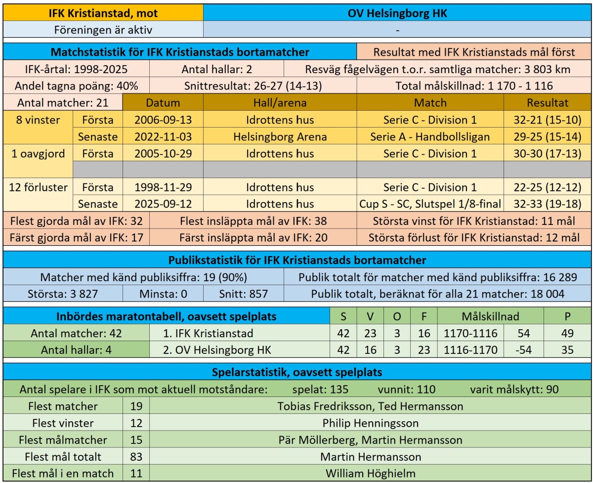 Statistik mot OV Helsingborg, och resultat de 10 senaste matcherna.