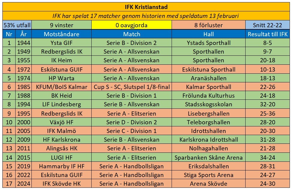 Den 13 februari har vi hittills spelat 17 matcher.