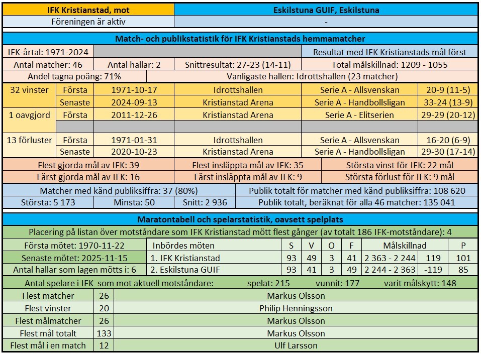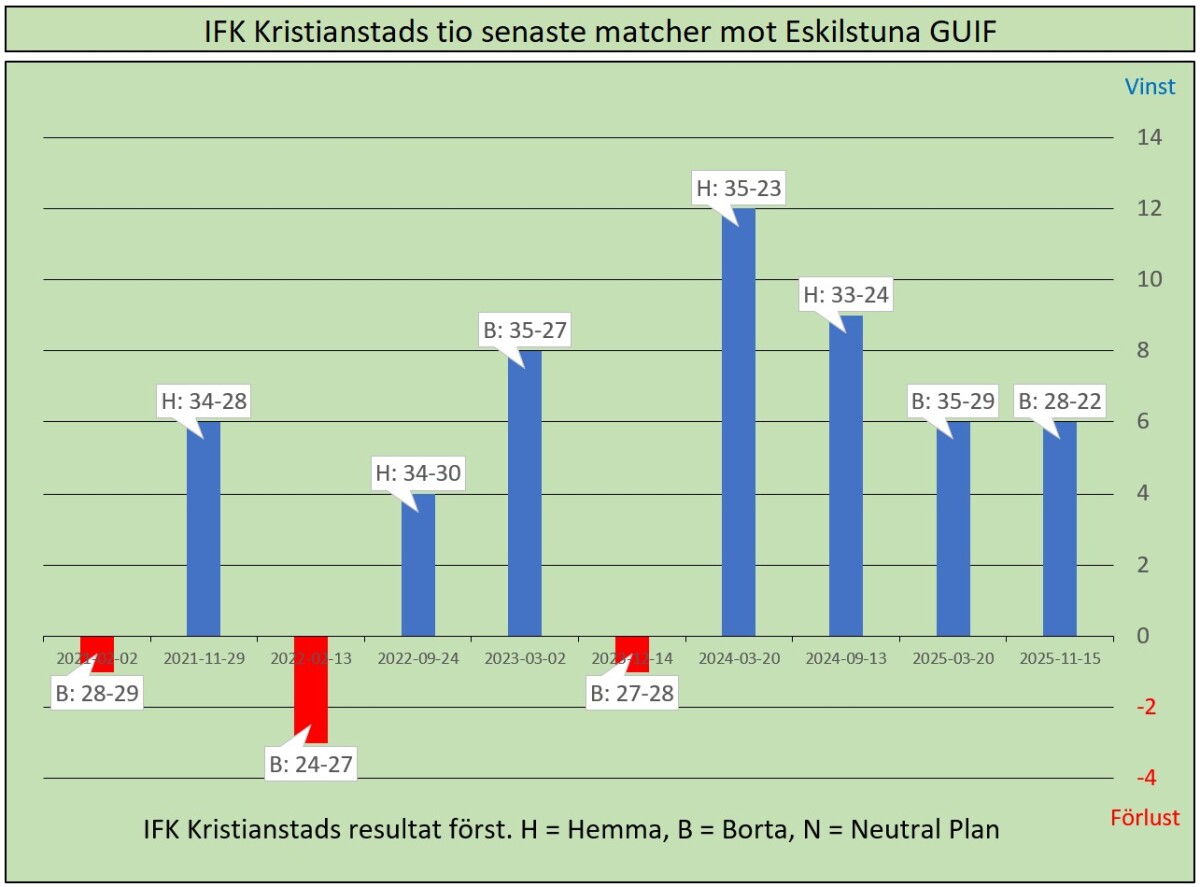 Guif är ett av de lag som vi mött flest gånger genom åren. Lördagens match blir den 94:e totalt och den 47:e i Kristianstad. Vi har vunnit 7 av våra 10 senaste matcher.