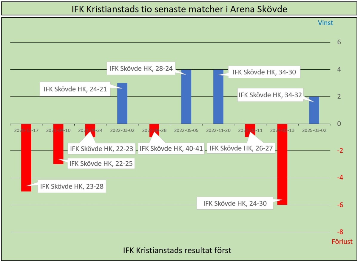Vi trivs i Arena Skövde, med 10 segrar på 20 matcher (och en oavgjord). Vi vann vår senaste match våren 2025 där.