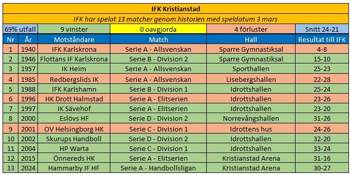 Den 3:e mars har vi 9 segrar på 13 matcher.