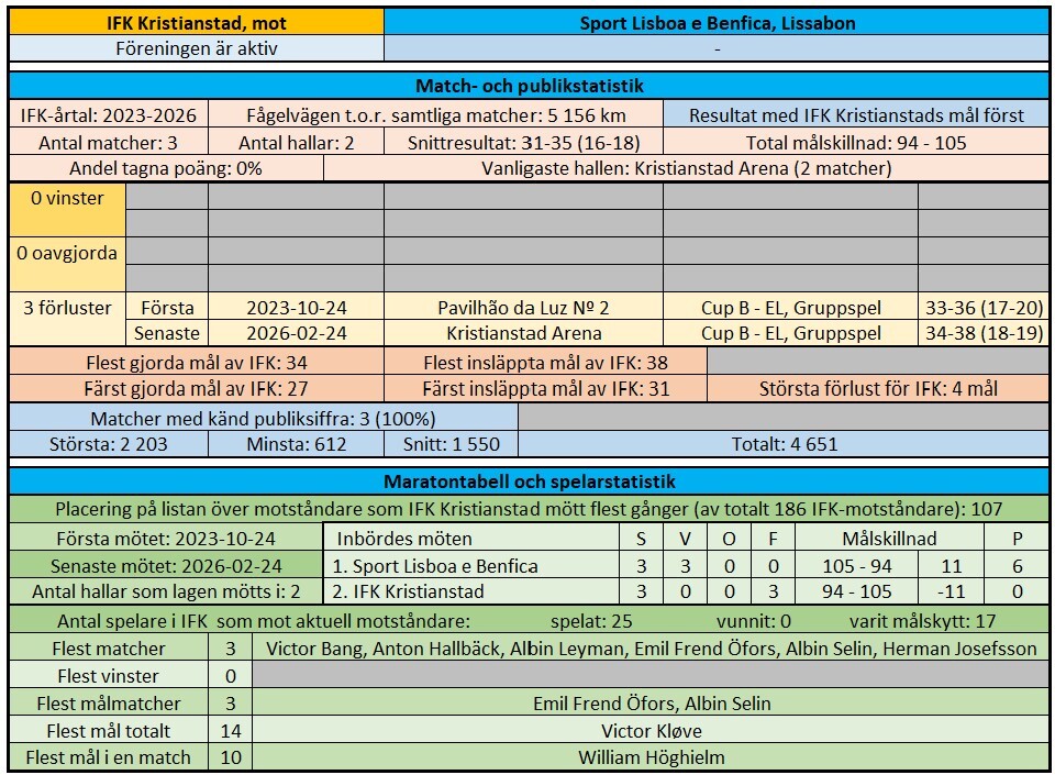 Benfica mötte vi i EHF European League, då blev det förlust båda gångerna. Det vi minns med välbehag är våra 10 (!) raka mål nere i Lissabon när vi gjorde match av tillställningen igen och pressade portugiserna in i slutet.
