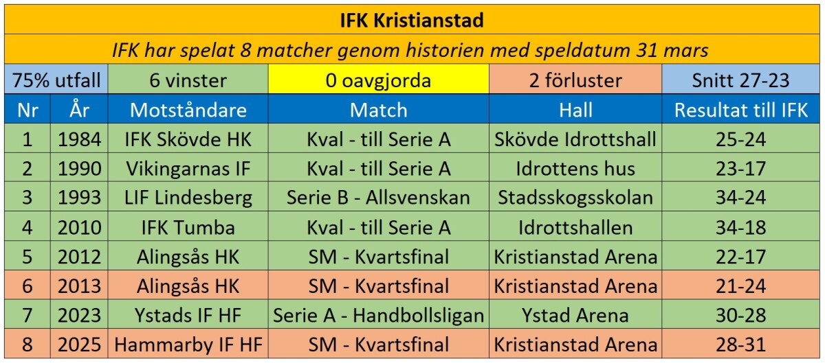 På dagens datum 31 mars har vi spelat 8 matcher.