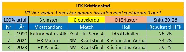 Vi har aldrig förlorat en match den 3 april, fast vi har i ärlighetens namn bara spelat 3 matcher på det datumet.